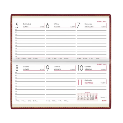 AGENDA SEMANA A LA VISTA, MEDIDAS 17 X 8 CM., 144 PÁGINAS, PAPEL BIBLIA, TAPA SIMIL CUERO COSIDA Y EMPASTADA.