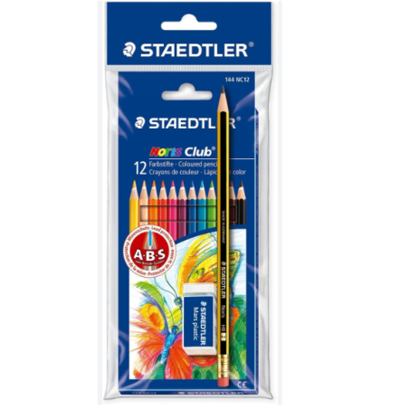 LAPICES COLOR 12 COL STAEDTLER ABS LARGO+GOMA+1 LAPIZ GRAFITO