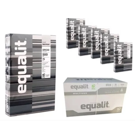CAJA RESMA 5 UNIDADES PAPEL OFICIO EQUALIT PLOMA 75GR, 500HJS